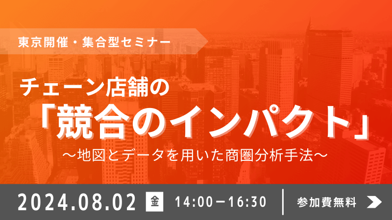 多店舗展開のチェーン企業では、新規出店時の商圏調査、売上予測、既存店の最適配置、集客の販促エリア策定など、あらゆる分析シーンにおいて、自社店舗を含めた「競合のインパクト」が分析テーマの一つとなっています。
