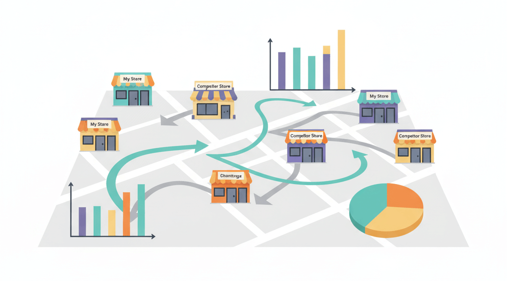 自店舗の来店客が、その前後にどの競合店を訪れているかを分析します。例えば、「自店の顧客の30%が、近隣のA店にも立ち寄っている」という事実が分かれば、A店との品揃えや価格戦略を比較検討し、差別化を図るための具体的なヒントが得られます。